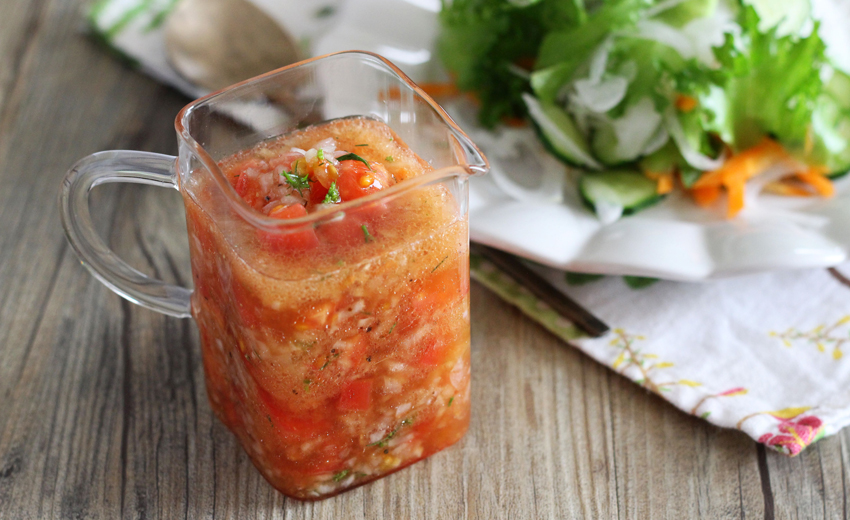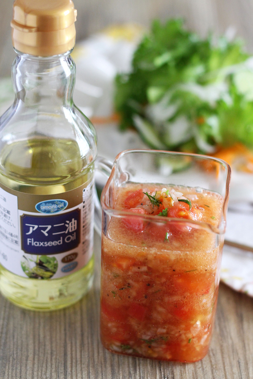 アマニで作るトマトたまねぎドレッシング 料理研究家提案レシピ