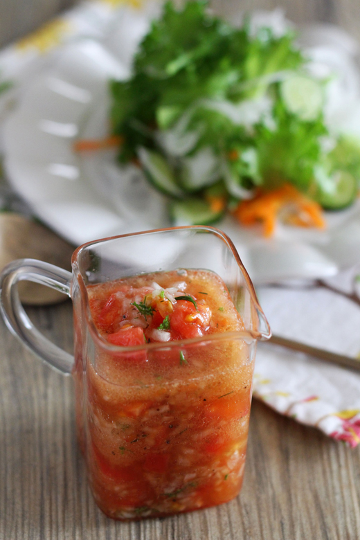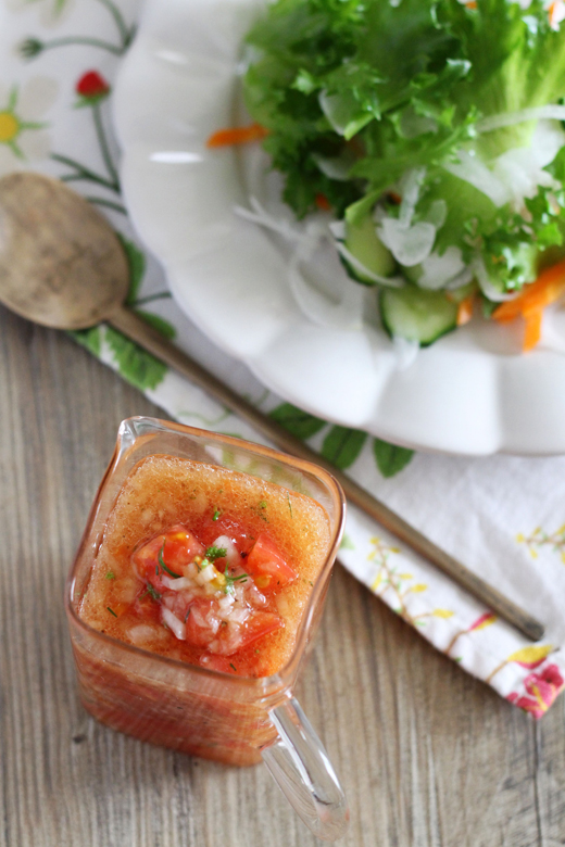 たまねぎやトマトがたっぷりでボリュームのあるドレッシングです。サラダだけではなくパンや蒸し料理にも合いますよ。